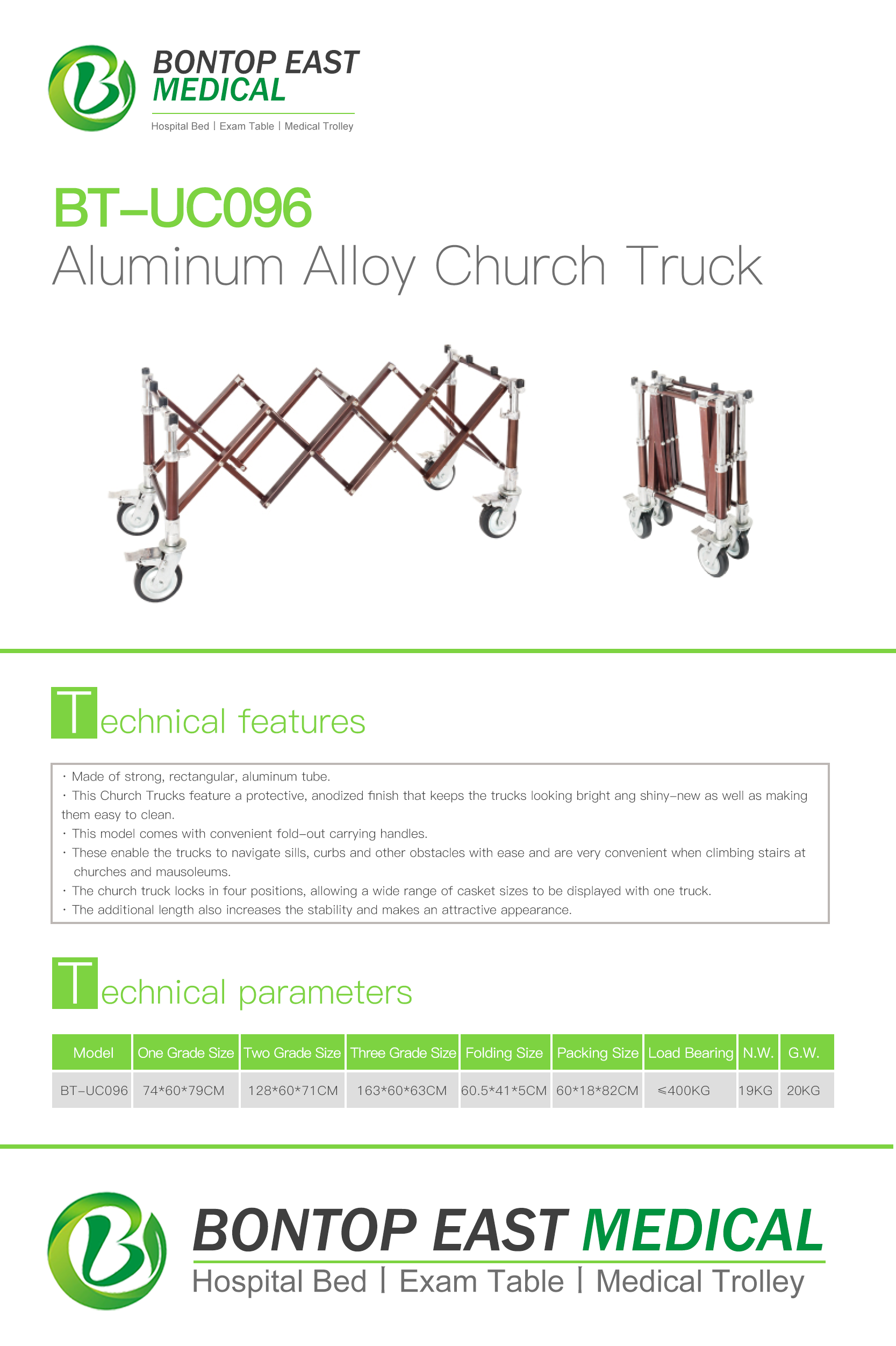 · The church truck locks in four positions, allowing a wide range of casket sizes to be displayed with one truck.