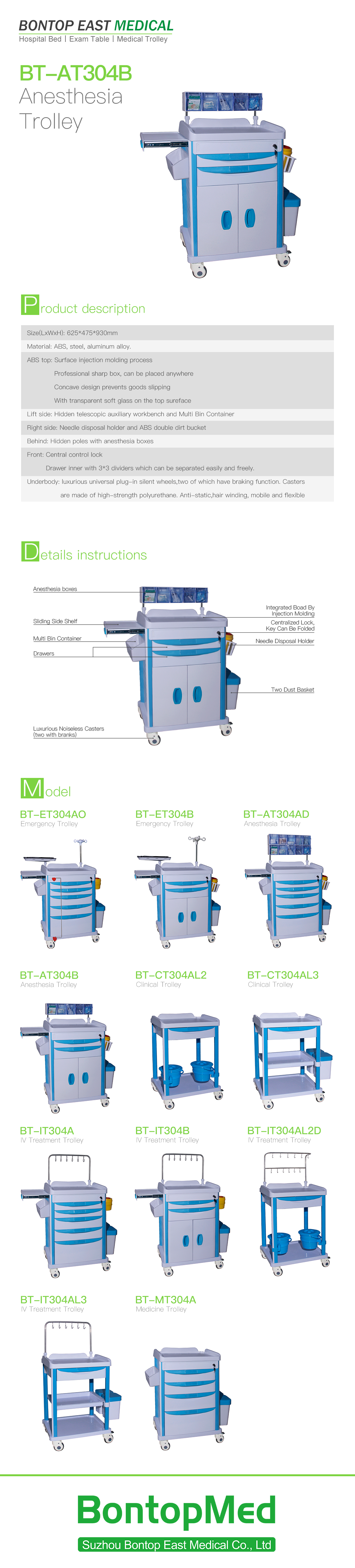 | Right side | Basket partition, can set hand-washing liquid, scissors, two-liter sharps box, ABS double dirt bucket; |
