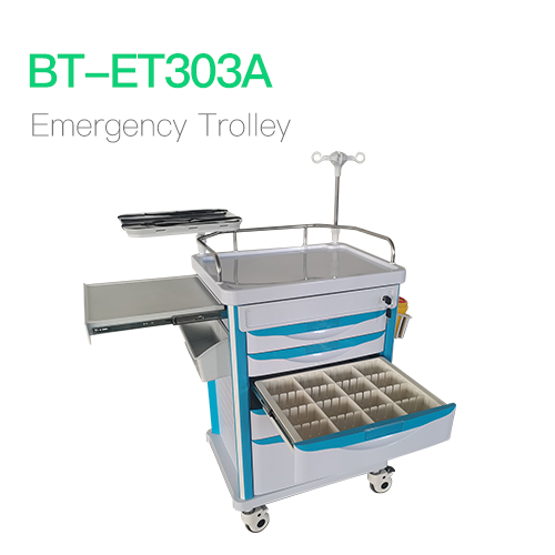 | Behind | Defibrillator board, hidden telescopic oxygen cylinder support, and active 5 meters power line |