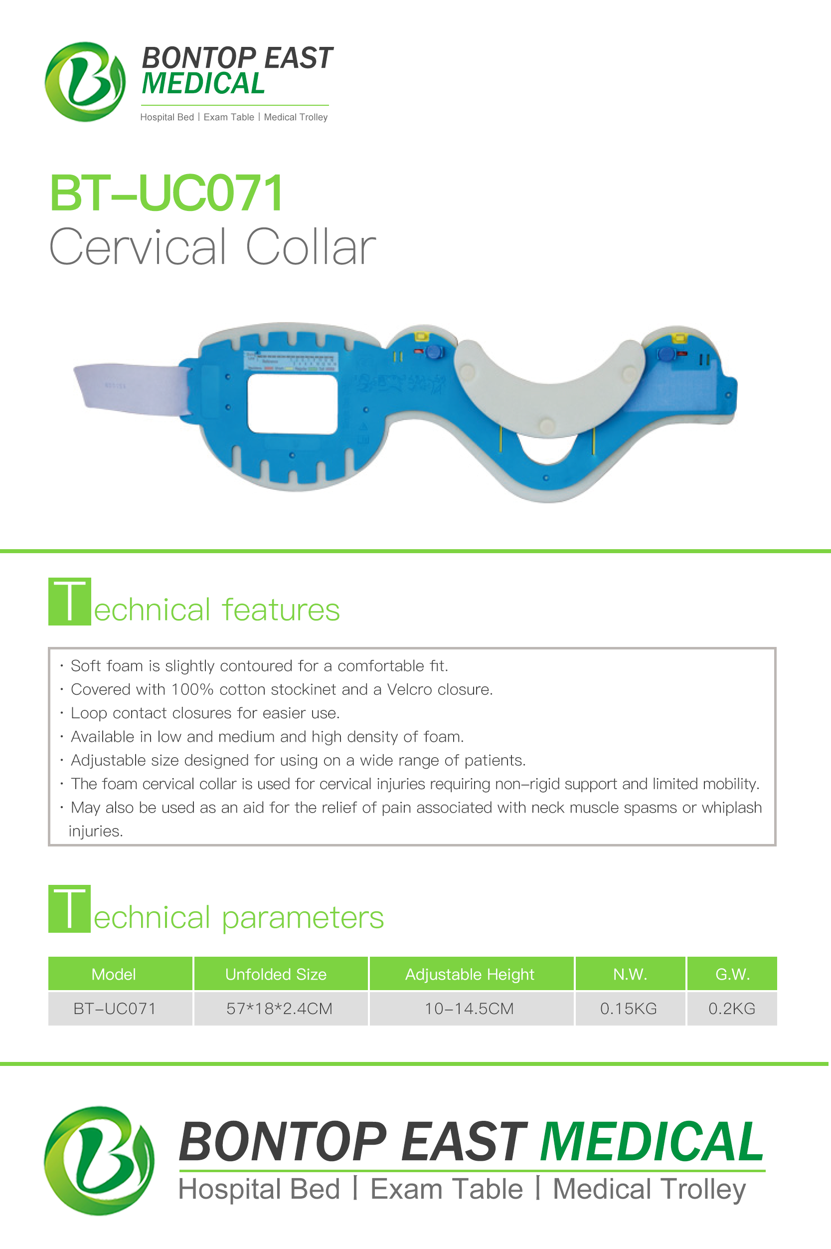 · The foam cervical collar is used for cervical injuries requiring non-rigid support and limited mobility.