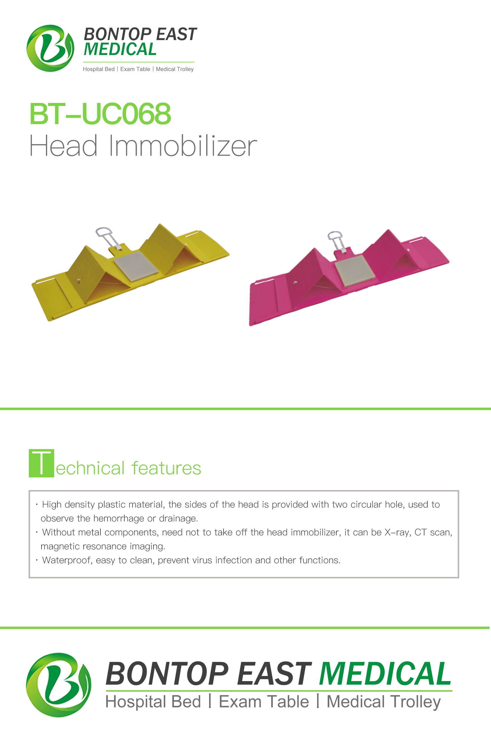 · Without metal components, need not to take off the head immobilizer, it can be X-ray, CT scan, magnetic resonance imaging.