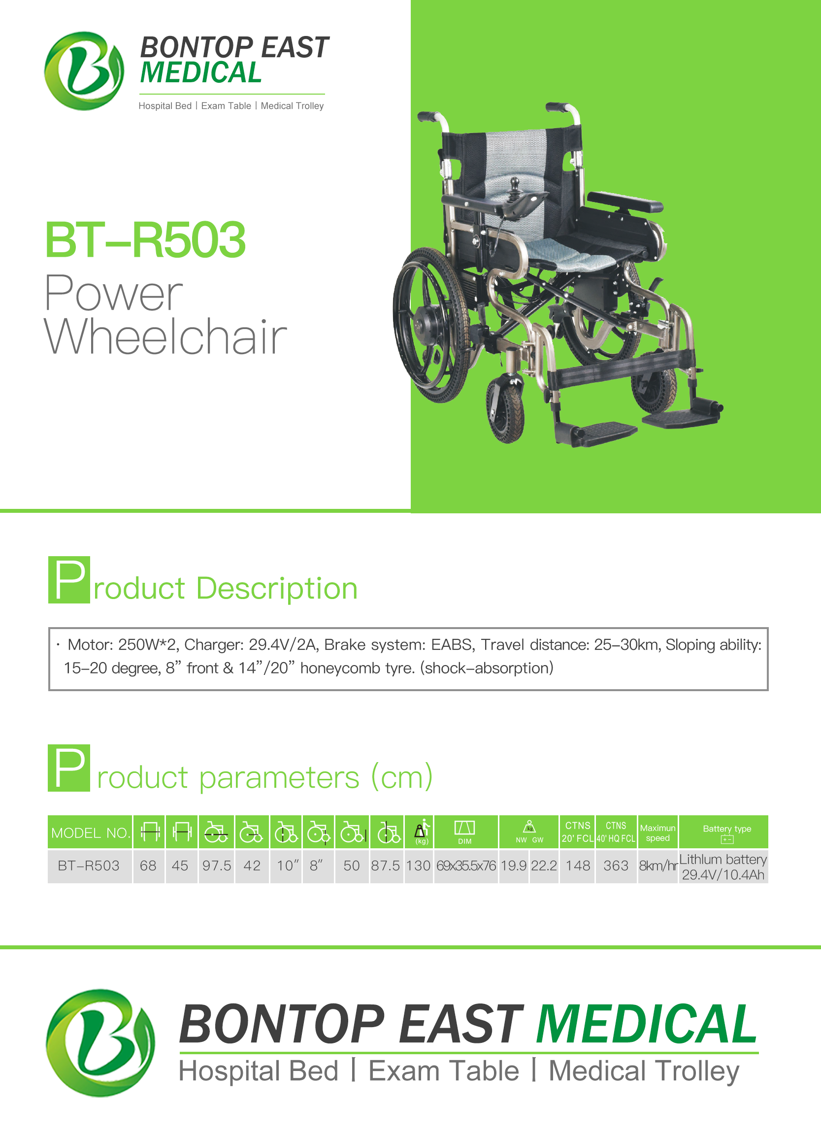 | Technical Parameters | Width: 68 cm Length: 97.6 cm Height: 87.5 cm Seat width: 46 cm Seat depth: 42 cm Seat height:50 cm Rear wheel inch: 10'' Front wheel inch: 8'' Battery type: lithium battery 29.4V / 10.4AH Max. speed: 8 km/hr Max. weight capacity: 130 kg |