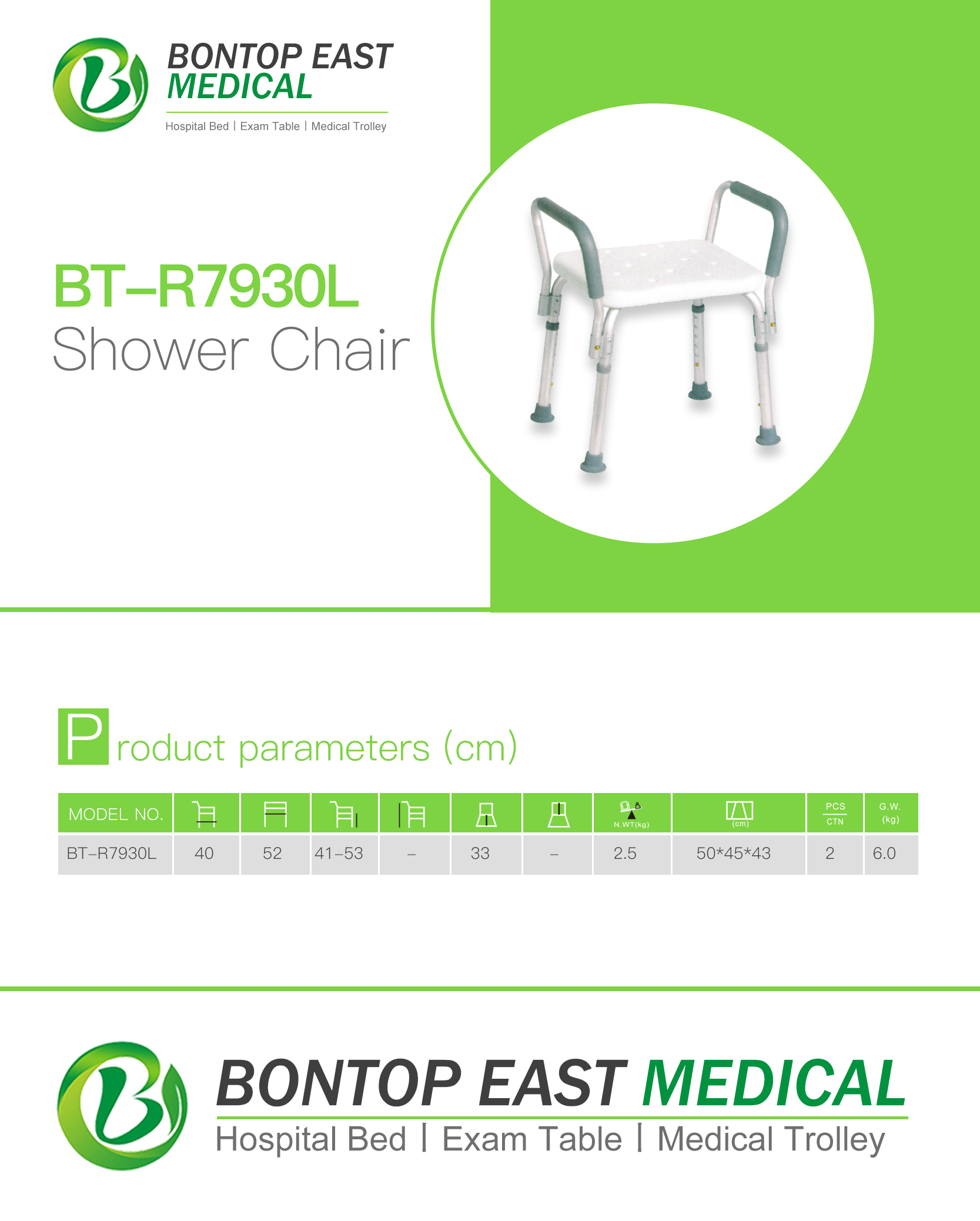 | Technical Configuration | • Sturdy and durable aluminum frame • Leg height is adjustable • Safe and comfortable bathing and showering • Non-slip feat secures bench • Concave PE seat for added comfort |