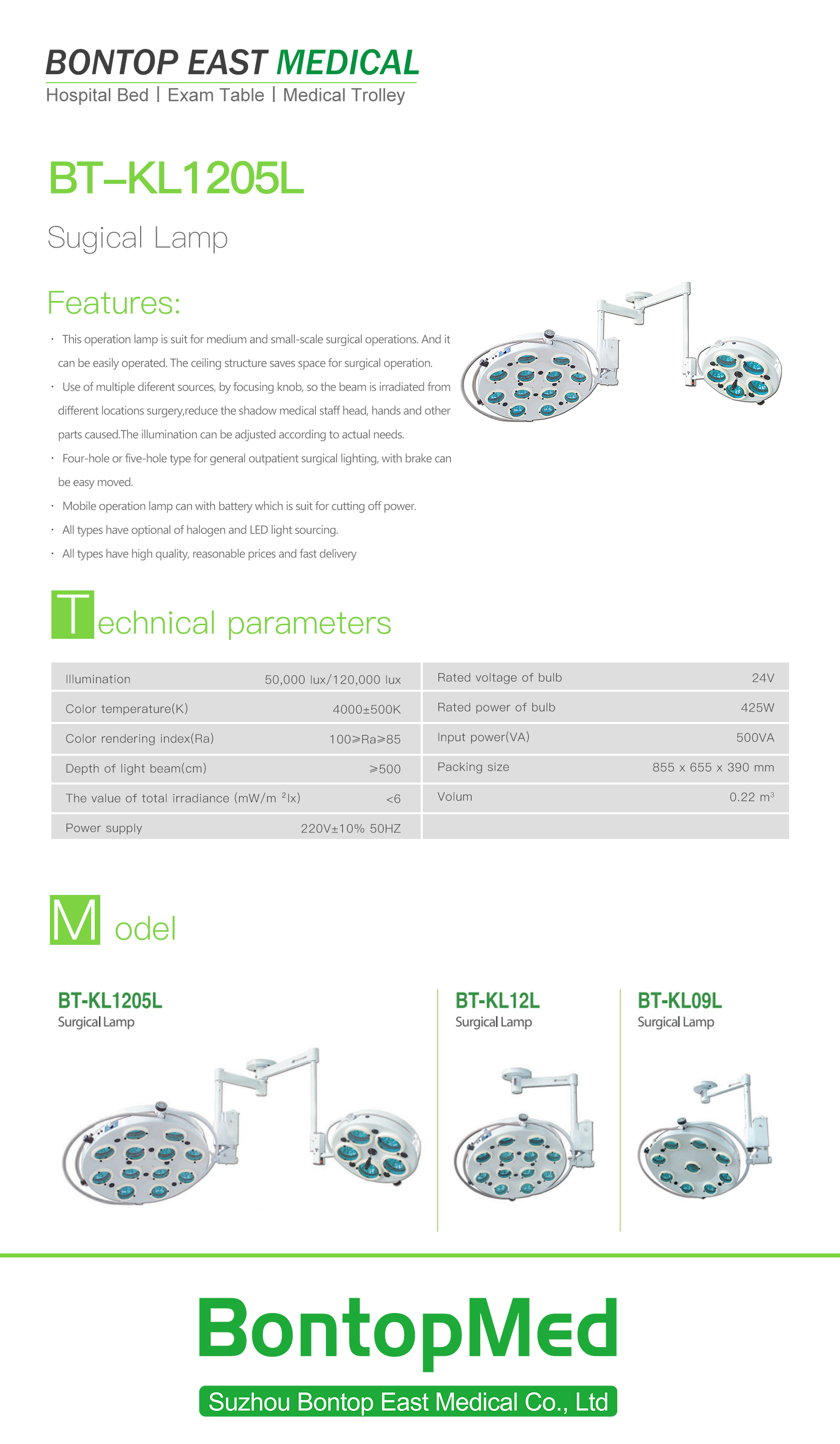 · BT-KL1205L use of multiple different sources, by focusing knob, so the beam is irradiated from different locations surgery, reduce the shadow medical staff head, hands and other parts caused.