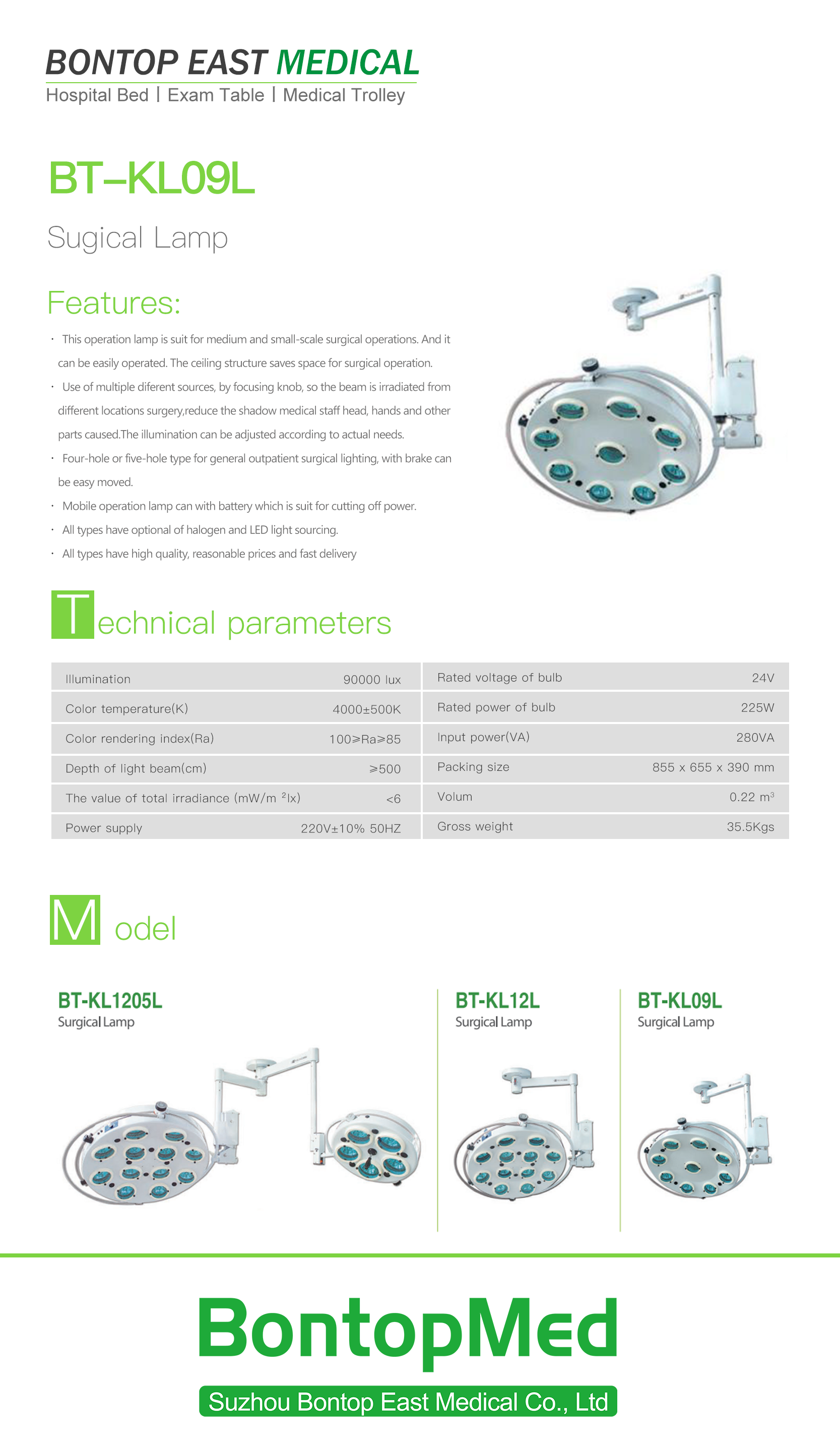 · BT-KL09L use of multiple different sources, by focusing knob, so the beam is irradiated from different locations surgery, reduce the shadow medical staff head, hands and other parts caused.